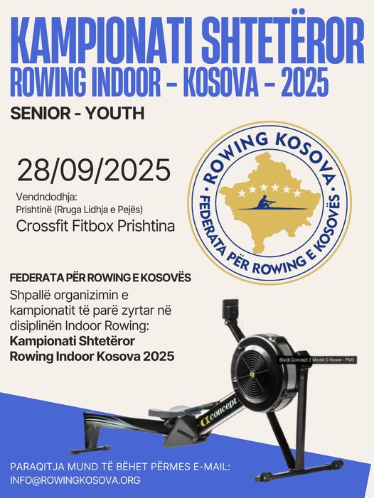 Federata për Rowing e Kosovës ka kënaqësinë të shpallë organizimin e kampionatit të parë shtetëror në disiplinën e Indoor Rowing: “Kampionati Shtetëror Rowing Indoor Kosova 2025” ( SENIOR – YOUTH ) Ky kampionat shënon një hap historik për zhvillimin e sportit të rowing-ut indoor në Kosovë dhe do të ofrojë mundësi për garuesit që të […]